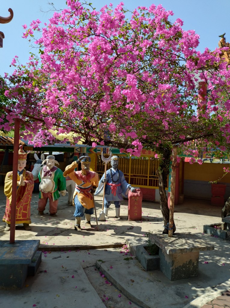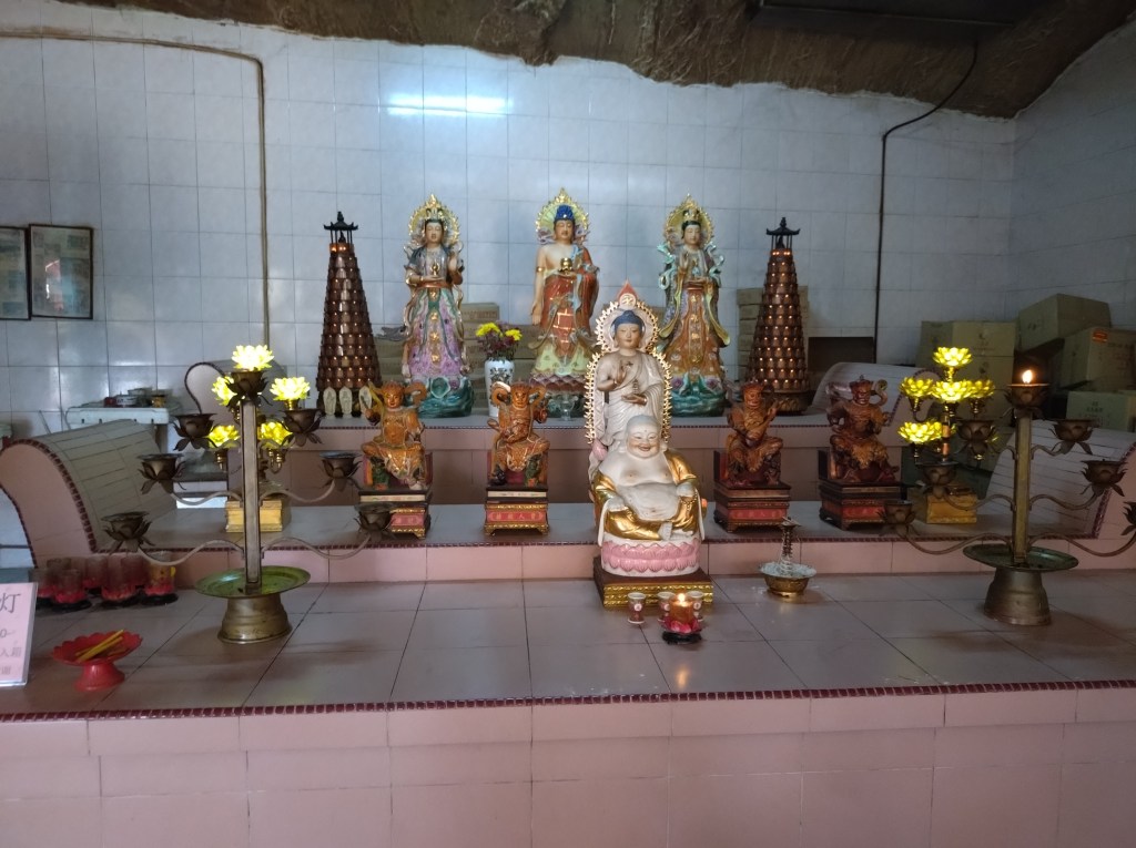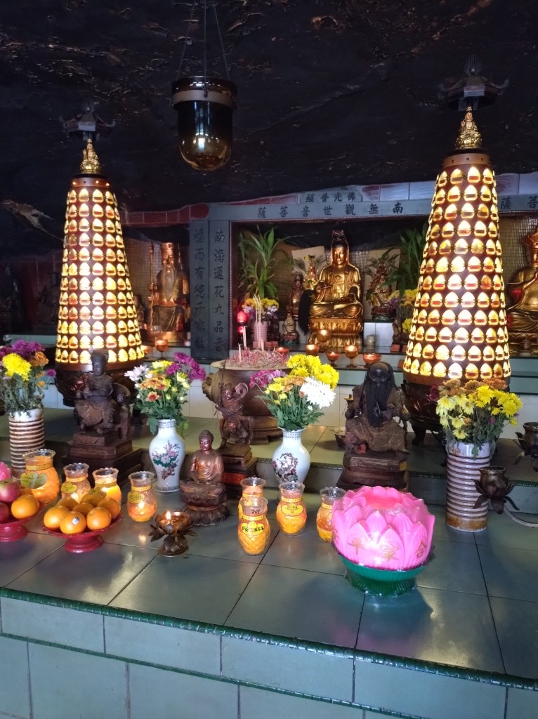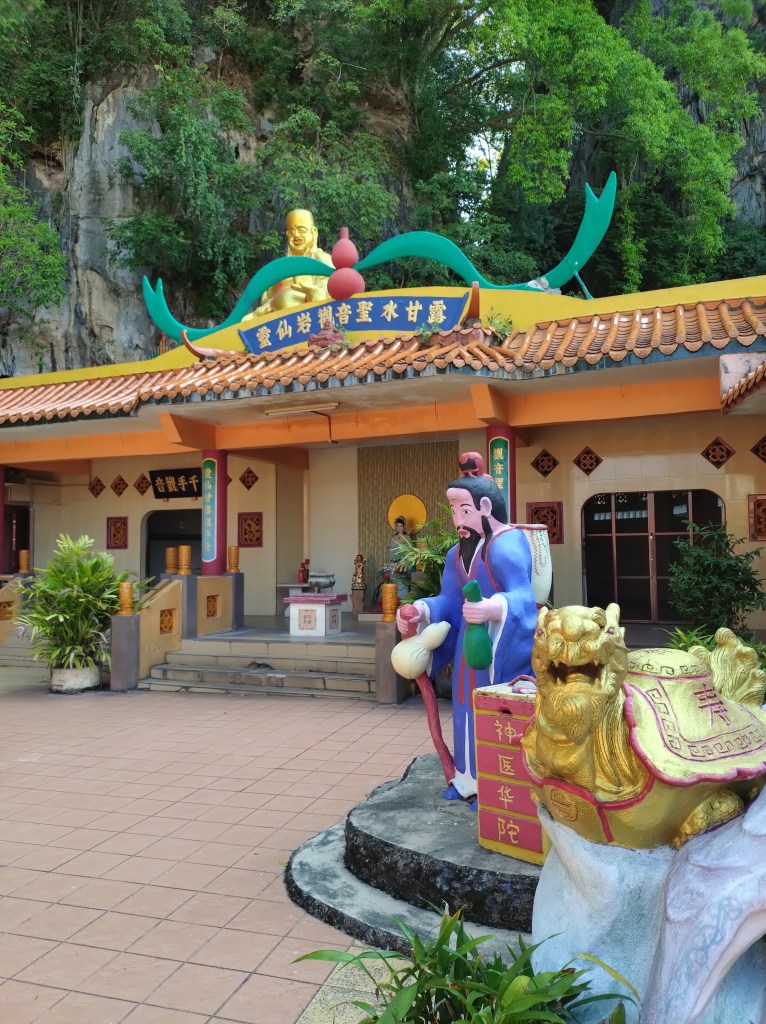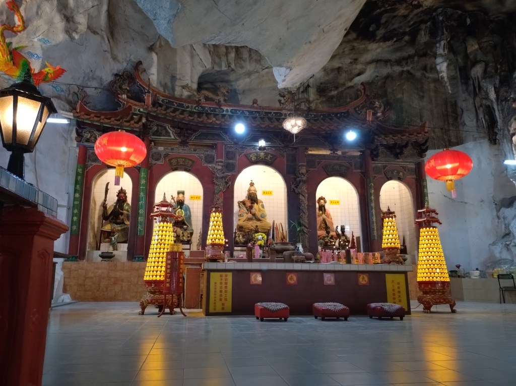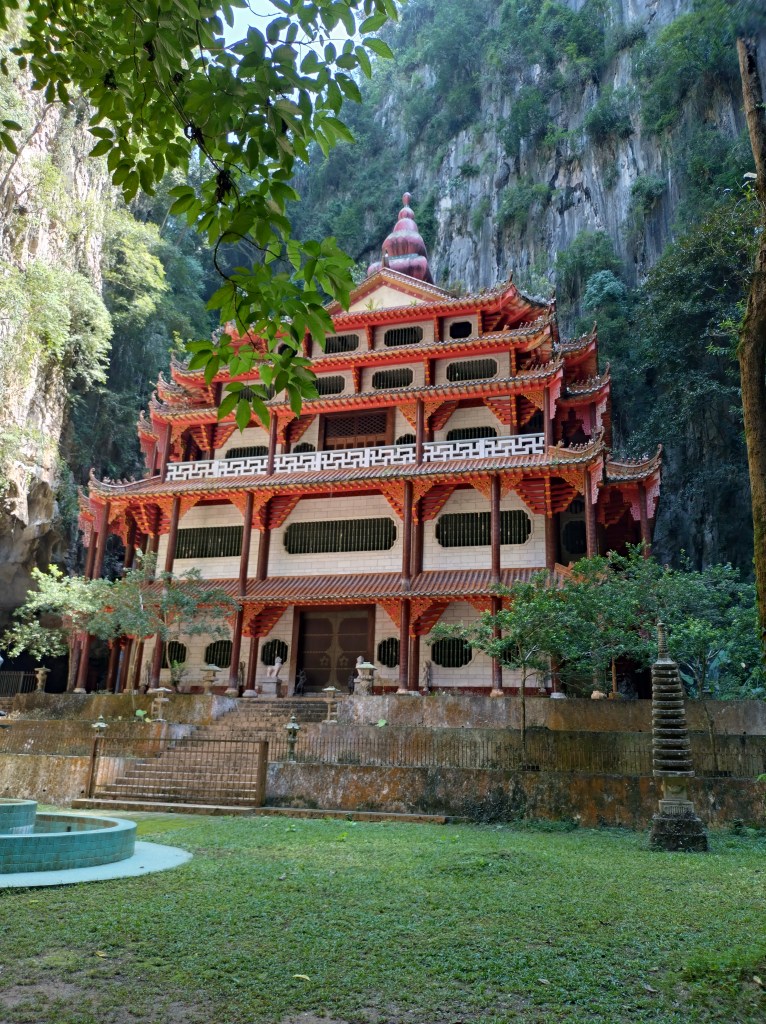 Vi startet med å besøke tre ulike buddhisttempler. Dette var såkalte «cave temples» som betyr at templene lå delvis innebygd i fjellet. Ipoh er jo omgitt av grønnkledde kalksteinsfjell, så her finnes vist utallige huler i området.
